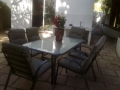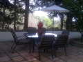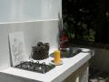 Zu dem Ferienhaus gehört eine große Terrasse mit einer zusätzlichen Außenküche. Auf der Terrasse befinden sich ein Esstisch mit Stühlen und Sonnenliegen, sodass Sie den Tag hier in aller Ruhe ausklingen lassen können. Die Terrasse wird durch einen Zitronenbaum und zahlreiche Pflanzen geschmückt. Von hier aus haben Sie direkten Zugang zum Naturgarten.