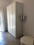 Das helle Schlafzimmer ist ebenso wie der Wohnbereich im andalusischen Stil eingerichtet. Der große Schrank bietet auch bei einem längeren Aufenthalt genügend Stauraum. Das gemütliche Doppelbett garantiert erholsamen Schlaf und angenehme Träume. Von dort aus können Sie sogar das Mittelmeer sehen.
