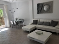 Durch die bodentiefen Fenster bietet sich Ihnen vom Wohnbereich aus ein einmaliger Blick auf das strahlend blaue Mittelmeer und die Terrasse mit einem angrenzenden Naturgarten.
