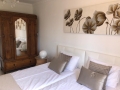 Durch den Flur gelangen Sie in das liebevoll eingerichtete Schlafzimmer. Das gemütliche Doppelbett sorgt für erholsamen Schlaf und angenehme Träume. Stauraum bietet ein zweitüriger Kleiderschrank. Vom Schlafzimmer aus haben Sie einen traumhaften Ausblick in den Garten der Cortijo Alegria.