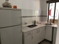 Die Einbauküche ist mit einem Gasherd, einem Kühlschrank mit Gefrierfach, einer Mikrowelle, einem Toaster und einer Kaffeemaschine ausgestattet.