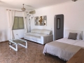 Der farbenfrohe und gemütliche Wohn- und Schlafbereich sorgt für die ideale Urlaubsstimmung. Das bequeme Doppelbett ist ein Garant für angenehme Träume und lässt Sie ruhig schlafen. Auf dem zusätzlichen Schlafsofa im Wohnbereich können weitere zwei Personen übernachten.
