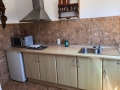 Von dem sich anschließenden Essbereich gelangen Sie durch einen Rundbogen in die Küche. Dort können Sie auch Ihren Gaumen auf Urlaub einstimmen, denn die Küche ist mit allem ausgestattet, was Sie zum Kochen und Verköstigen benötigen, wie z. B. einem Gaskochfeld, einem Kühlschrank mit Gefrierfach, einer Mikrowelle, einer Kaffeemaschine und einem Toaster.