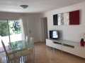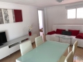 Die Terrasse ist komplett möbiliert und mit einem Essbereich und Sonnenliegen ausgestattet
